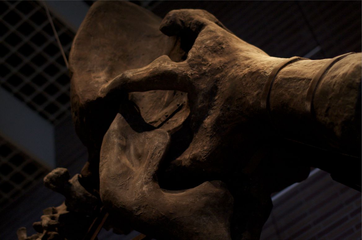 入ってすぐに、ドドーンとマンモスの化石(もちろんニセモノ)が!