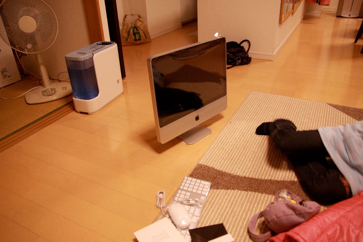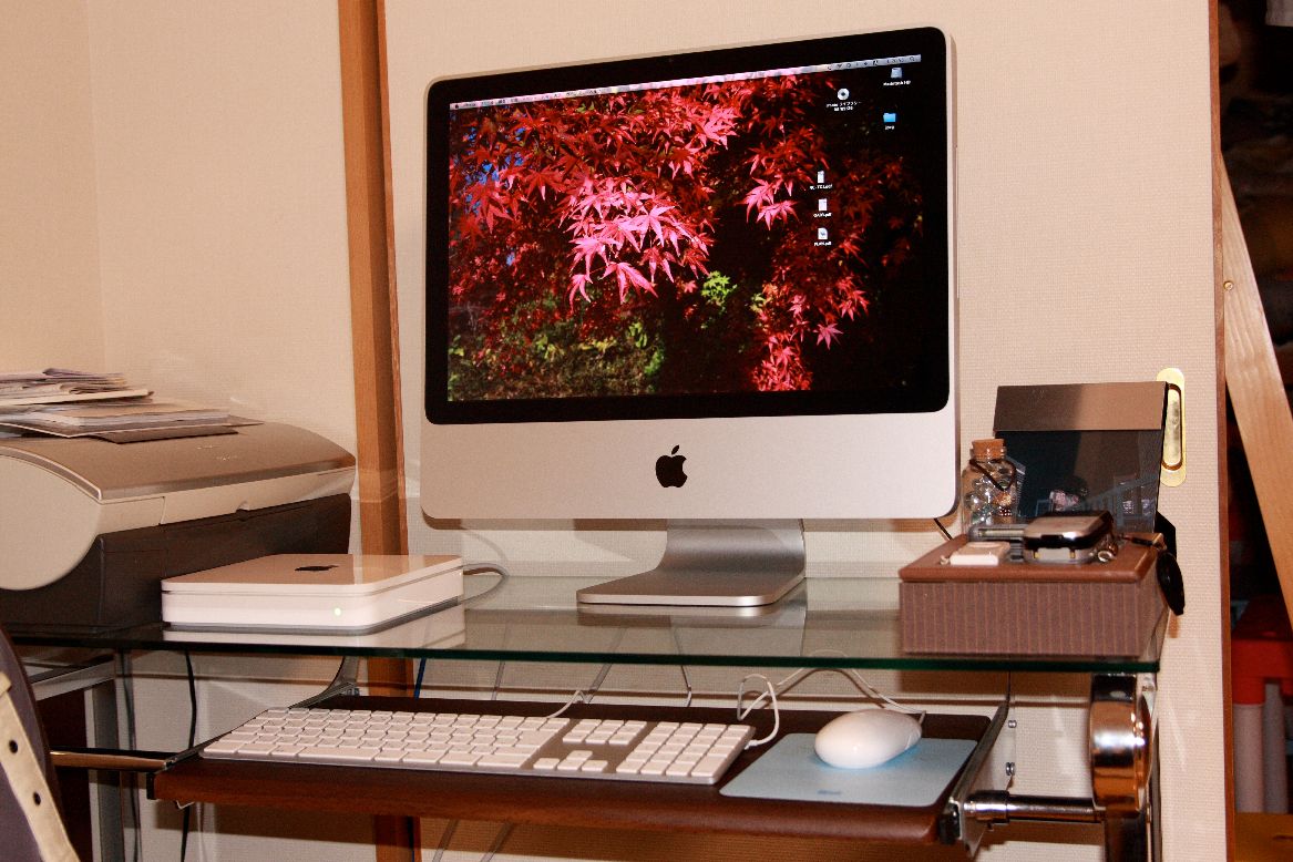 というわけで、無駄な白い箱だったTime Capsule、iMacの左側にやっと居場所ができました・・・。
