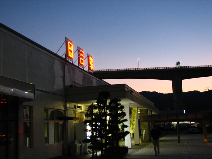 17:30頃に岡谷に到着。ここから飯田線に乗り換えるんだが、30分以上次の電車が無い。本当に電車が来るんだろうか。汽車だったらどうしよう。シュッポッポ。