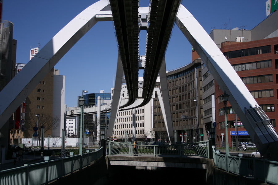 千葉パルコの近くをモノレールが走ってる。