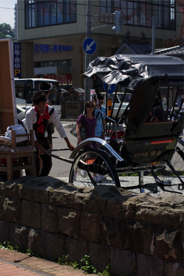 屈強なオトコがひく人力車・・・けっこういいカネ取りまっせ。